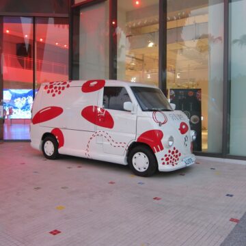 There is a car displayed in front of the entrance of the facility. It is used as a kitchen car. 0